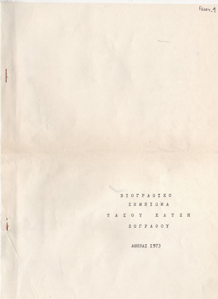 Βιογραφικό σημείωμα του Τάσου Χατζή σε πρώτο πρόσωπο. Αναφέρονται σπουδές στην Ελλάδα και το εξωτερικό, συμμετοχή σε ατομικές και ομαδικές εκθέσεις, βραβεία, συλλέκτες και άλλοι φορείς που κατέχουν έργα του καλλιτέχνη, επιμέλεια εκδόσεων κ.ά. Συντάχθηκε για την υποψηφιότητα του καλλιτέχνη για τη θέση του καθηγητή ζωγραφικής και ελεύθερου σχεδίου στο Πολυτεχνείο Αθηνών.