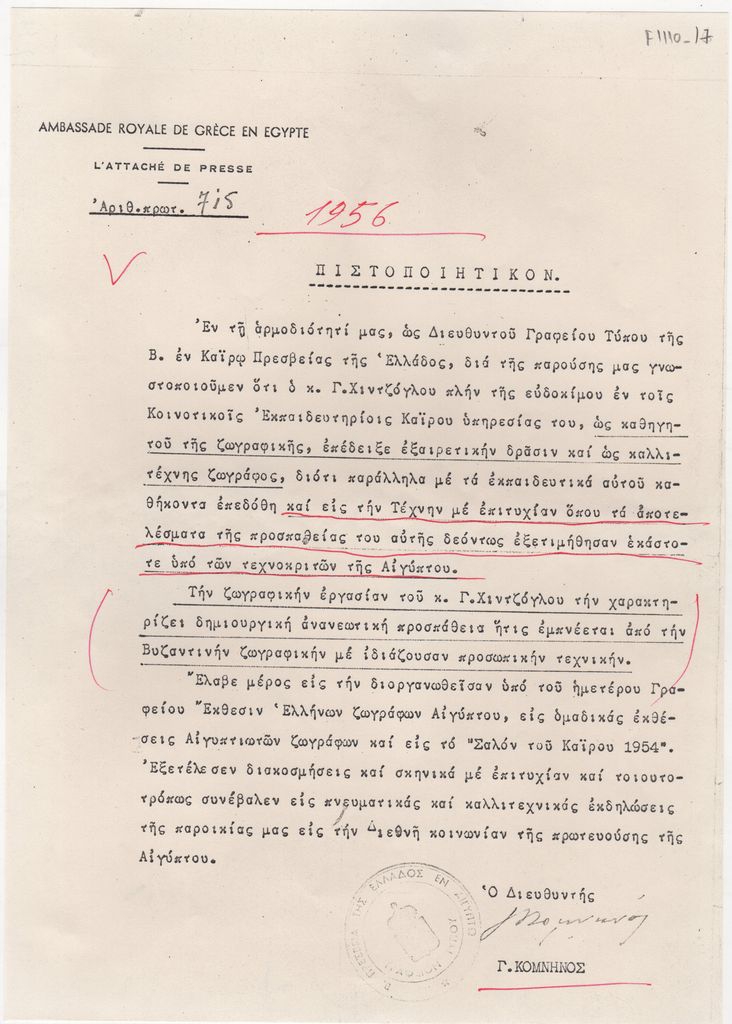 Συστατική επιστολή από τον Γ. Κομνηνό για τον Γιώργο Χίντζογλου