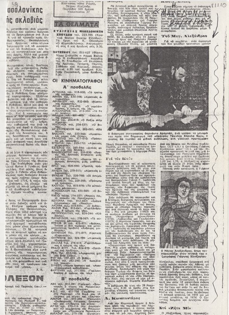 Φωτοαντίγραφο, χαρτί, 29.5×21 εκ., στα ελληνικά, δημοσίευσης άρθρου αναφερόμενου σε έργο του Γιώργου Χίντζογλου, με εικονιζόμενο τον Μέγα Αλέξανδρο που φιλοτέχνησε για τον εορτασμό των 2300 χρόνων από τον θάνατό του στρατηλάτη.