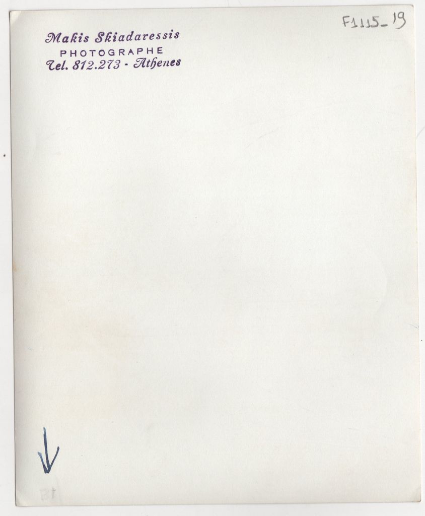 Αναπαραγωγή έργου της Βέρας Χουτζούμη. Στην πίσω όψη, σφραγίδα του φωτογράφου Μάκη Σκιαδαρέση.