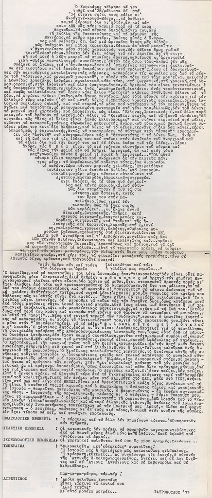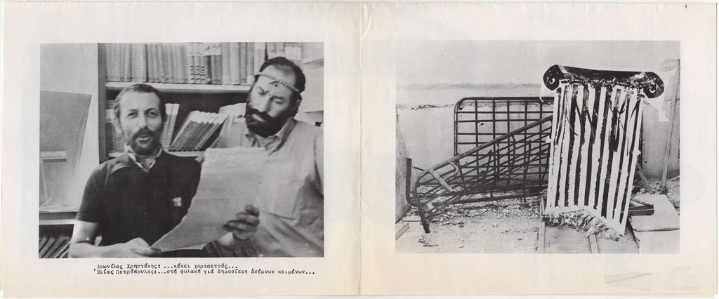 Έντυπο, χαρτί δίπτυχο, 20,5×16,5 εκ., στα ελληνικά, έκθεσης του Λεωνίδα Χρηστάκη, η οποία διεξάγεται στο Καλλιτεχνικό Πνευματικό Κέντρο Ώρα στην Αθήνα.