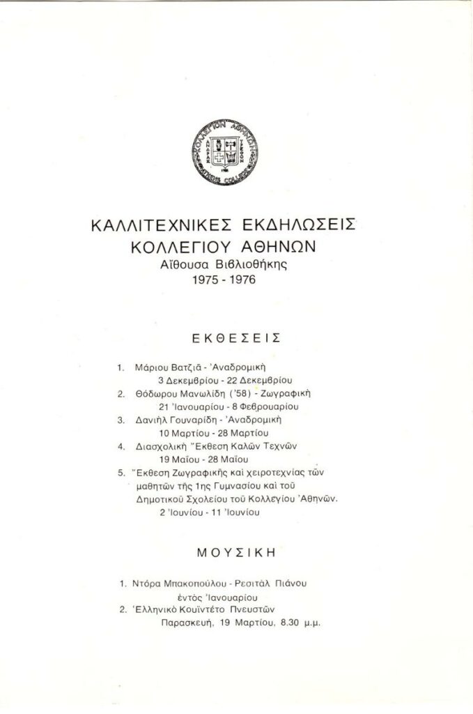 Στο οπισθόφυλλο, πρόγραμμα εκδηλώσεων του Κολλεγίου.