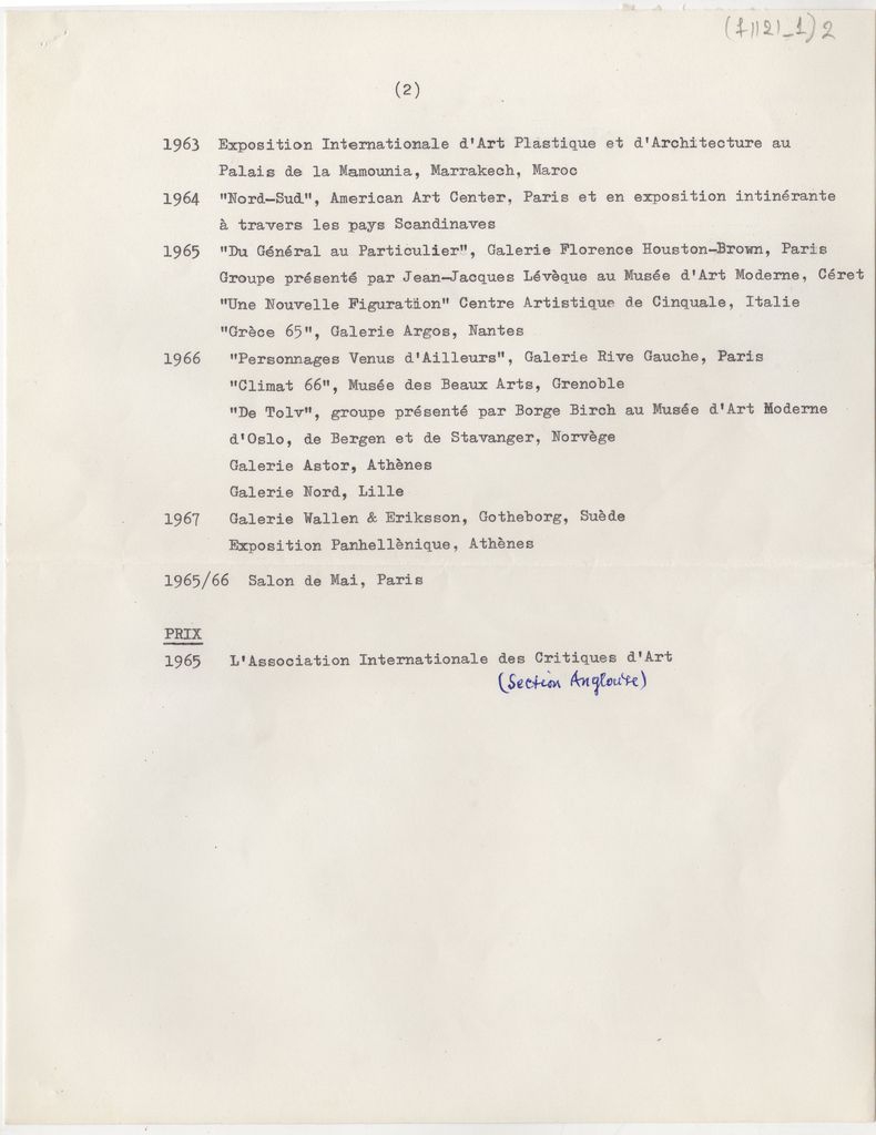 Περιέχει σπουδές, λίστα εκθέσεων και βραβεύσεις.