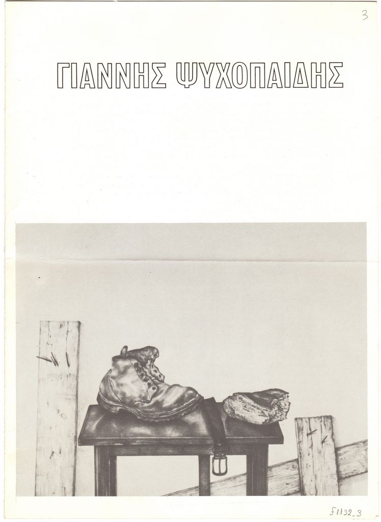 Έντυπο, χαρτόνι αναδιπλωμένο, 29×21 εκ., στα ελληνικά, έκθεσης του Γιάννη Ψυχοπαίδη.
