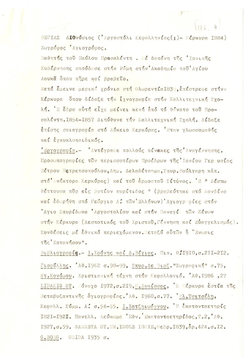 Βιογραφικό, δακτυλόγραφο, χαρτί, 28,5×21 εκ., στα ελληνικά, του Διονύσιου Βέγια.