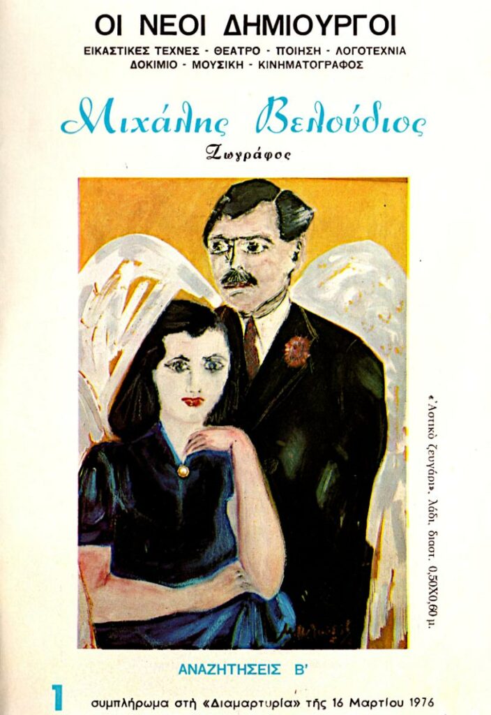 Έντυπο, χαρτί ιλλουστρασιόν, 8 φφ, 21×14,5 εκ., στα ελληνικά, για τον Μιχάλη Βελούδιο.