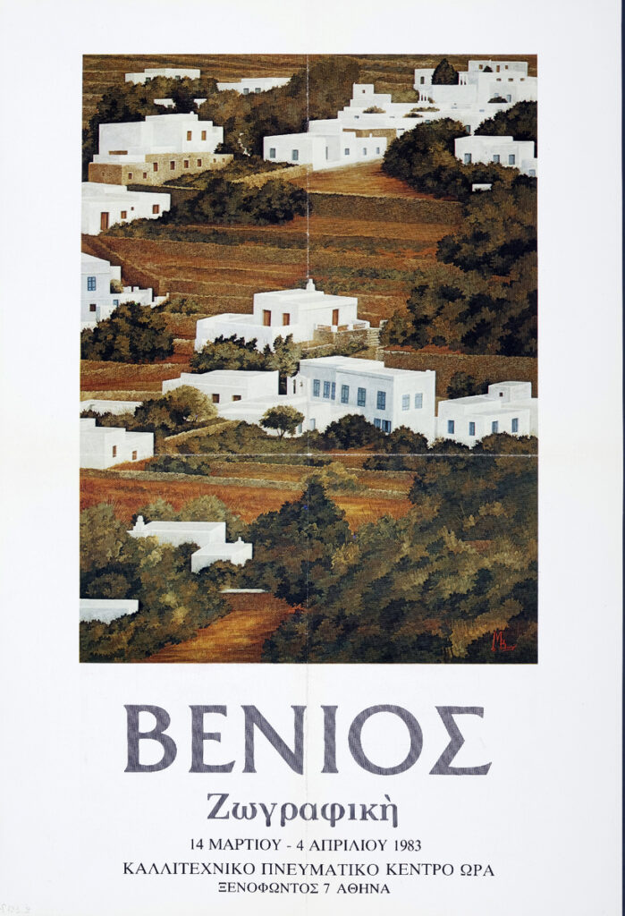 Αφίσα ατομικής έκθεσης του Μάρκου Βενιού, η οποία διεξάγεται στο Καλλιτεχνικό Πνευματικό Κέντρο Ώρα στην Αθήνα.