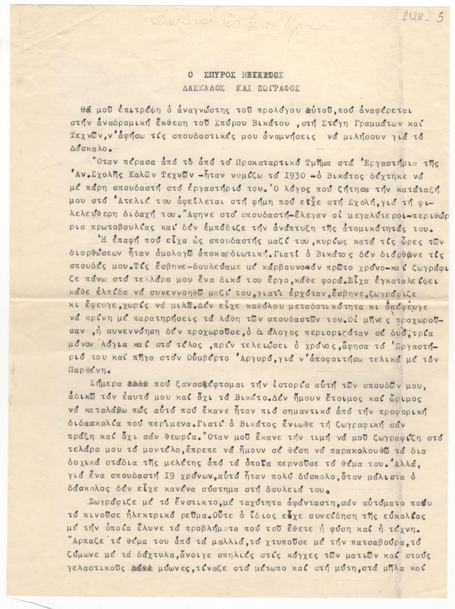 Ο Σπύρος Βικάτος. Δάσκαλος και ζωγράφος