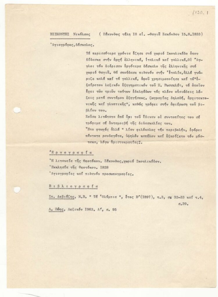 Βιογραφικό σημείωμα του Νικόλαου Βισκόντη
