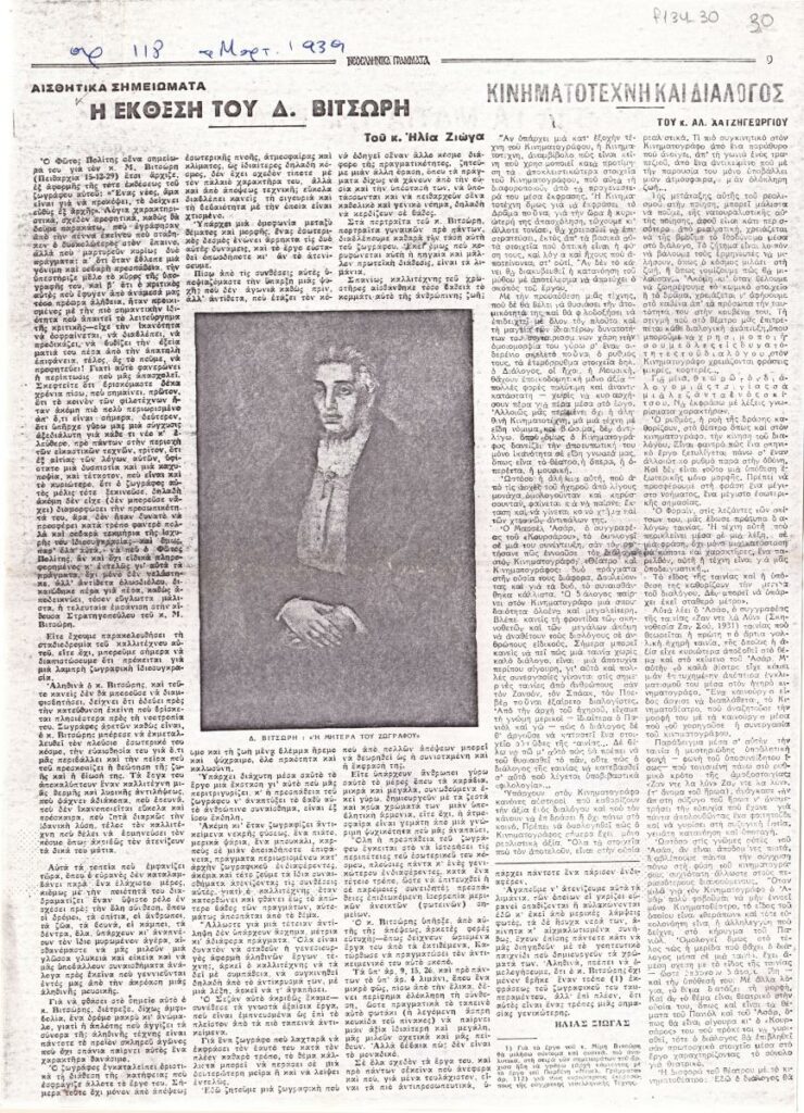 Φωτοαντίγραφο, χαρτί, 29,5×21 εκ., δημοσίευσης άρθρου για τον Μίμη Βιτσώρη και το έργο του.