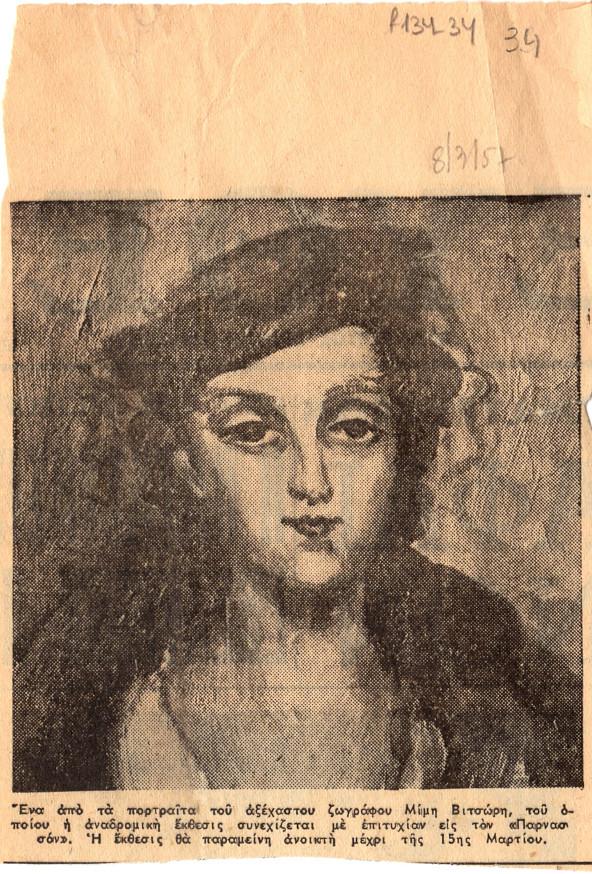 Απόκομμα, χαρτί, 13,5×10 εκ., με αναπαραγωγή έργου του Μίμη Βιτσώρη, α/μ.