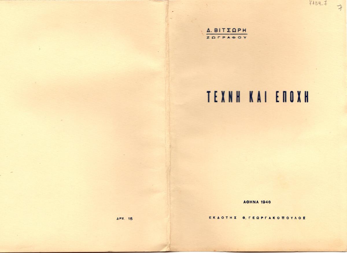 Έντυπο (βιβλίο), χαρτί, 15 φφ, 19,5×13,5 εκ., στα ελληνικά, του Δημήτρη Βιτσώρη με τίτλο “Τέχνη και Εποχή”.