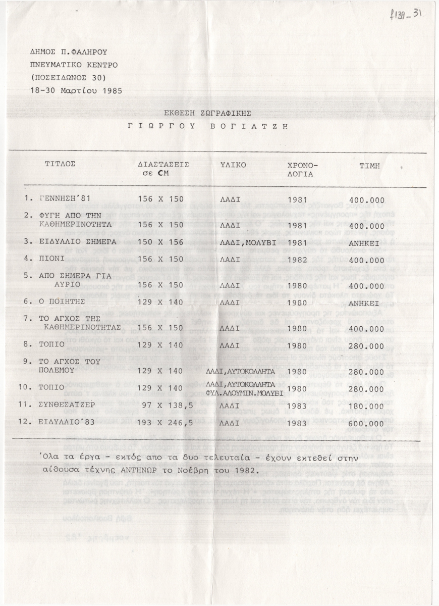 Έκθεση ζωγραφικής του Γιώργου Βογιατζή με πίνακες της περιόδου 1978-83 (ΣΥΝΘΕΣΪΖΕΡ)