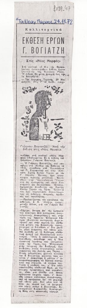 Έκθεση έργων Γ. Βογιατζή στις ‘Νέες Μορφές’