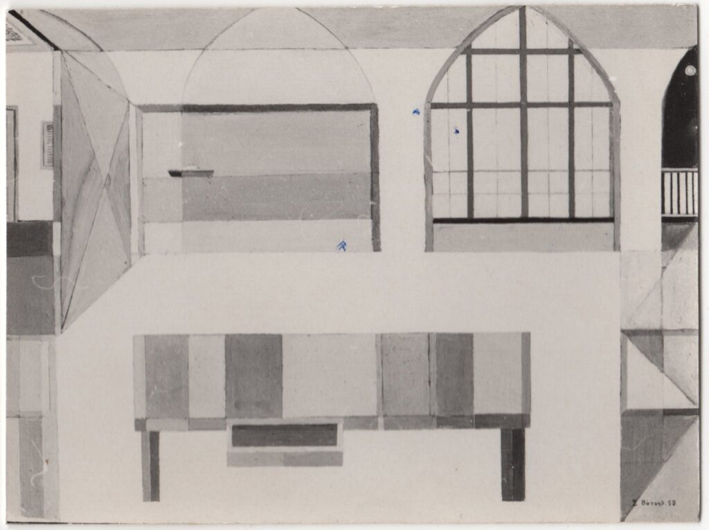 Φωτογραφία έργου, α/μ, σε φωτογραφικό χαρτί, 7,5×10,0 εκ. Στην πίσω όψη επιγραφές.