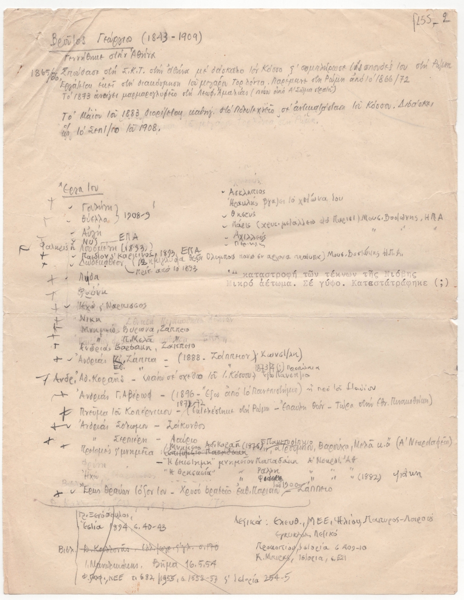 Κείμενο, χειρόγραφο, με μολύβι, στα ελληνικά, σε χαρτί, 28,0×21,7 εκ. Περιέχει σύντομη αναφορά στις σπουδές του καλλιτέχνη, κατάλογο έργων και βιβλιογραφία.