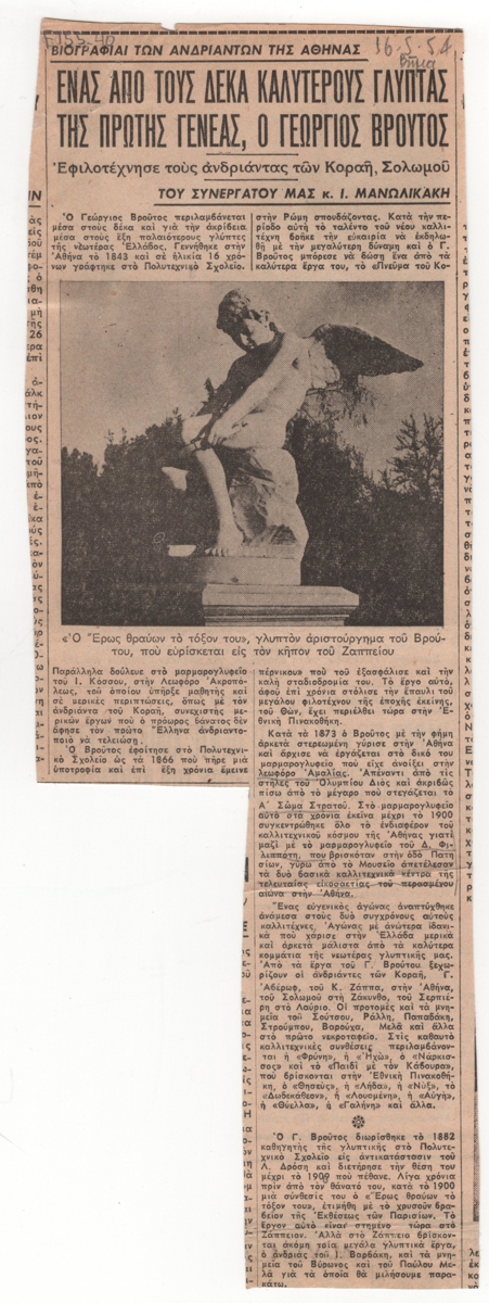 Ένας από τους δέκα καλύτερους γλύπτας της πρώτης γενεάς, ο Γεώργιος Βρούτος