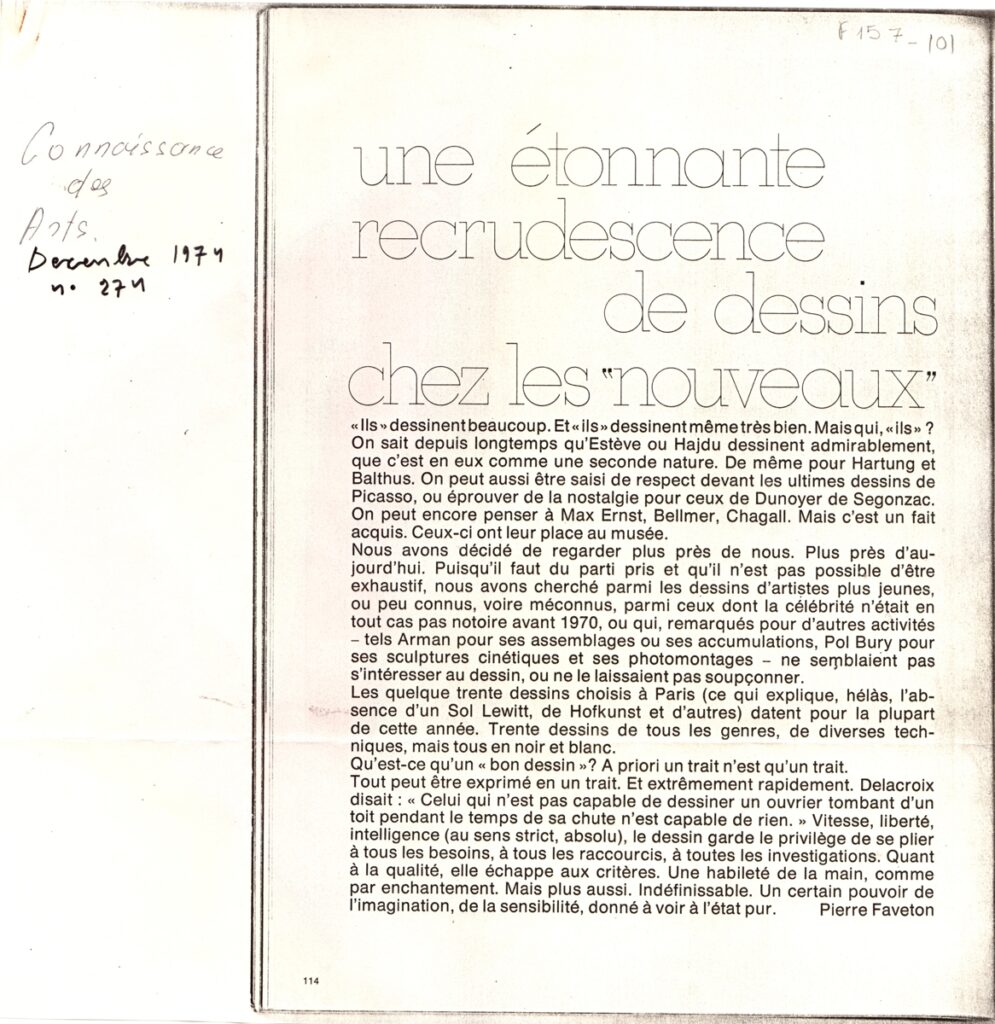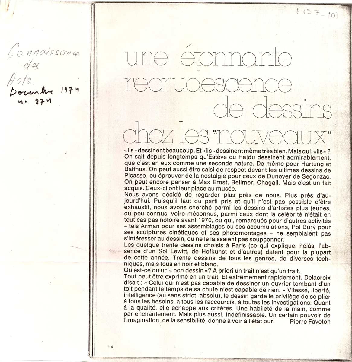 Φωτοαντίγραφο, χαρτί, 2 φφ, 29×29 και 29×21,5 εκ., στα γαλλικά, δημοσίευσης κειμένου αναφερόμενου σε καλλιτεχνικές τάσεις.
