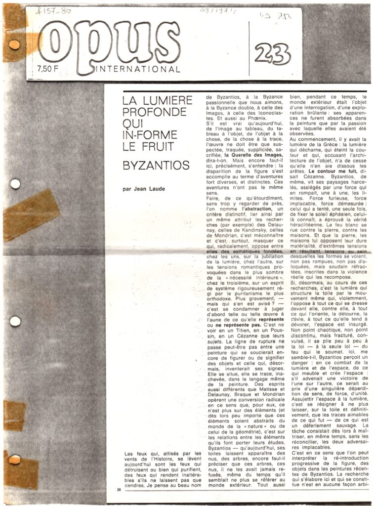 Φωτοαντίγραφο, χαρτί, 2 φφ, 33×24 εκ., στα γαλλικά, δημοσίευσης κειμένου για τον Κωνσταντίνο Βυζάντιο και το έργο του.