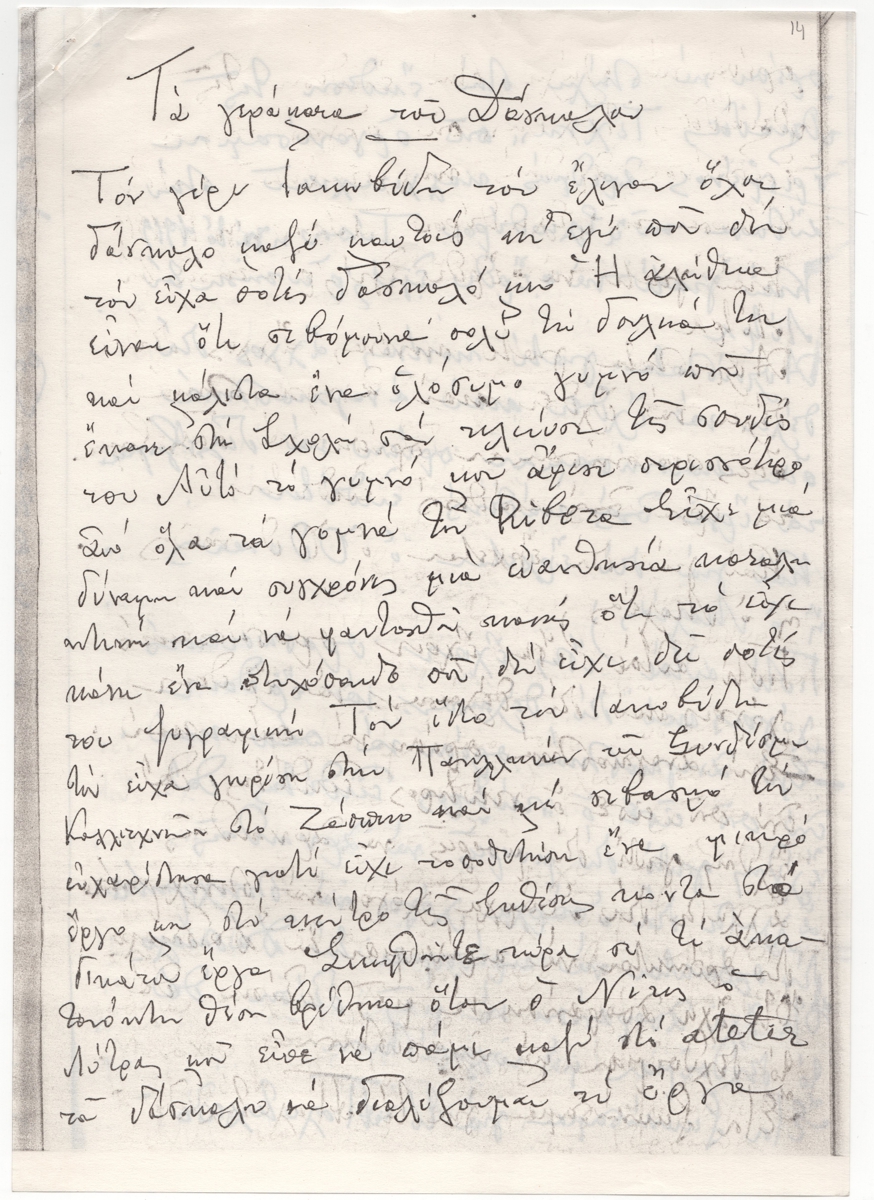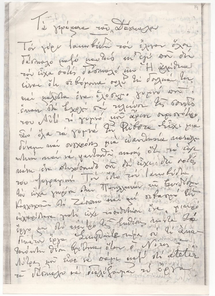 Φωτοαντίγραφο κειμένου, χειρόγραφου, στα ελληνικά, χαρτί, 30,0×21,0 εκ., στα ελληνικά. Κείμενο του Π. Βυζάντιου, όπου αναφέρεται στους παλιούς δασκάλους της ζωγραφικής.
