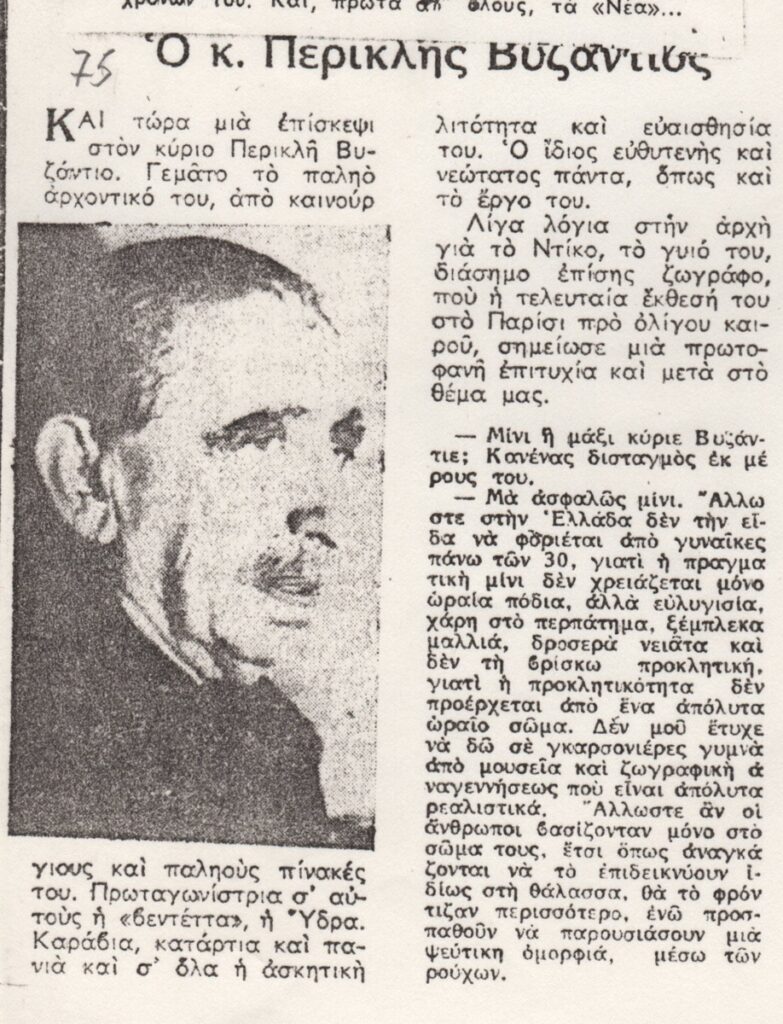 Φωτοαντίγραφο αποκόμματος εντύπου, χαρτί, 11,0×8,5 εκ., στα ελληνικά. Στο δημοσίευμα περιέχεται απόσπασμα συνέντευξης του καλλιτέχνη για ζητήματα μόδας. Εικονογραφείται με αναπαραγωγή φωτογραφίας του καλλιτέχνη.