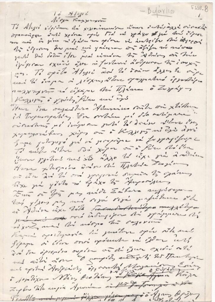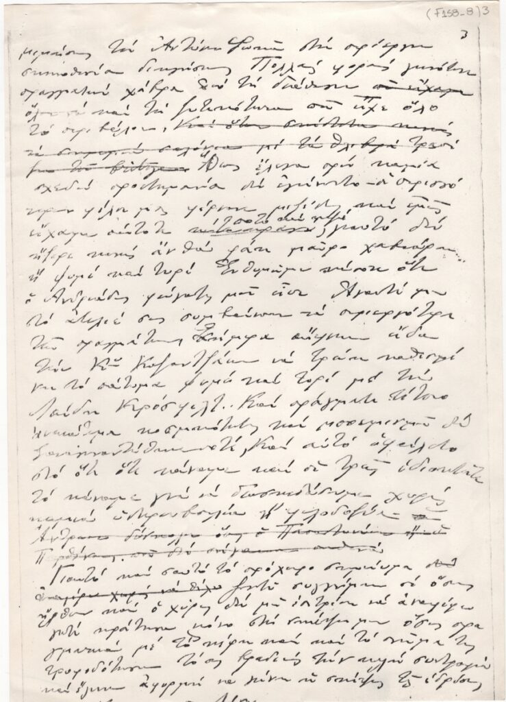 Φωτοαντίγραφο κειμένου, χειρόγραφο, 3 φφ, χαρτί, 29,7×21,0, στα ελληνικά. Κείμενο για την λέσχη καλλιτεχνών “Ατελιέ” που ίδρυσε ο καλλιτέχνη το 1928 μαζί με τον ζωγράφο Παύλο Καλλιγά και τον γλύπτη Φωκίων Ρώκ (μετέπειτα Στέγη Γραμμάτων και Τεχνών).