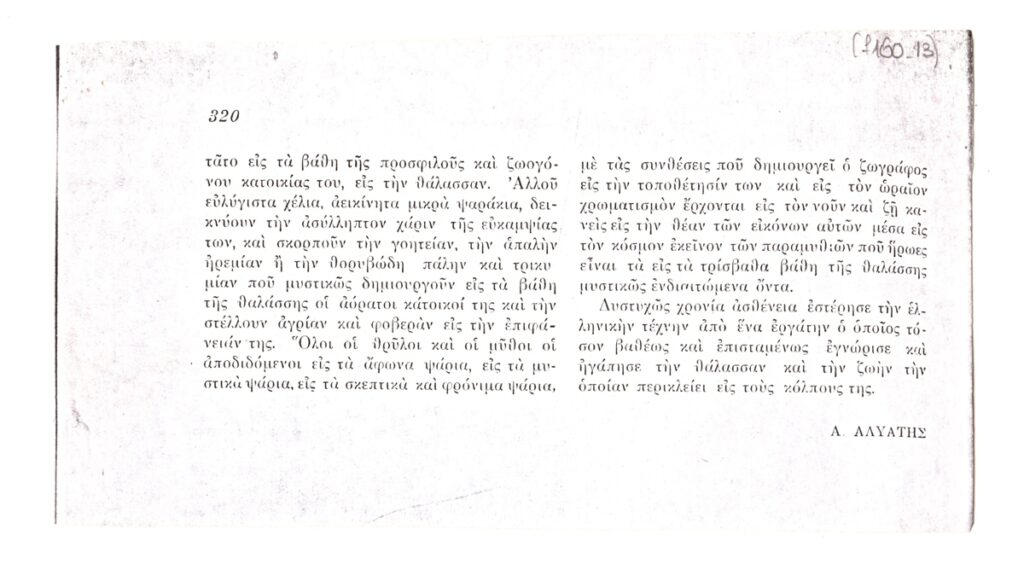 Εντάσσεται στη στήλη “Σύγχρονοι Έλληνες Καλλιτέχναι”.
