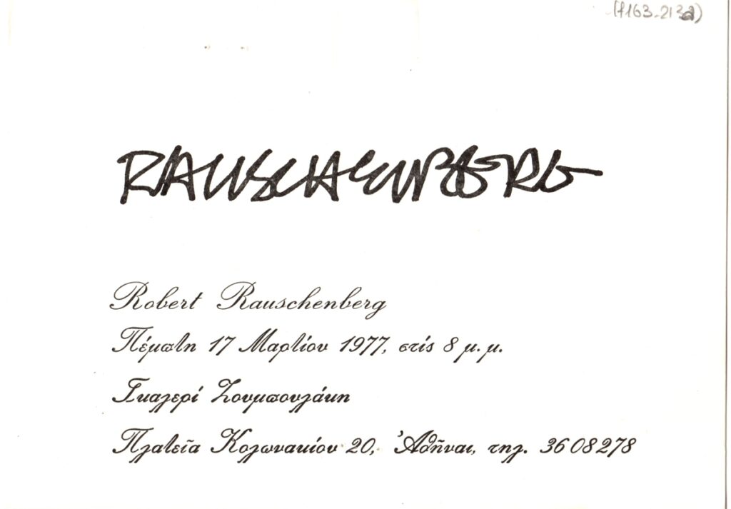 Σπύρος Βασιλείου (1902 - 1985) ; Γιώργος Ιωάννου, λογοτέχνης (1927 - 1985) ; Δημήτρης Περδικίδης (1922 - 1989) ; Αλέκος Φασιανός (1935 - 2022) ; Κώστας Τσόκλης (1930) ; Δανιήλ (1924 - 2008) ; Pierre Restany (1930 - 2003) ; Δημήτρης Μυταράς (1934 - 2017) ; Χρίστος Καράς (1930 - 2023) ; Robert Rauschenberg (1925 - 2008) ; Jean Dubuffet ; Zoltan Kemeny ; Βασίλης Κυπραίος ; Χάρης Βογιατζής (1924 - 1981) ; Βλάσης Κανιάρης (1928 - 2011) ; Νίκος Κεσσανλής (1930 - 2004) ; Δημοσθένης Κοκκινίδης (1929 - 2020) ; Γρηγόρης Τούντας