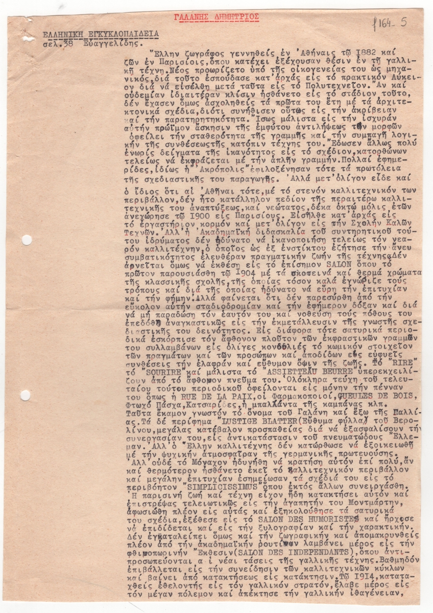 Αποδελτίωση λήμματος για τον Δημήτρη Γαλάνη