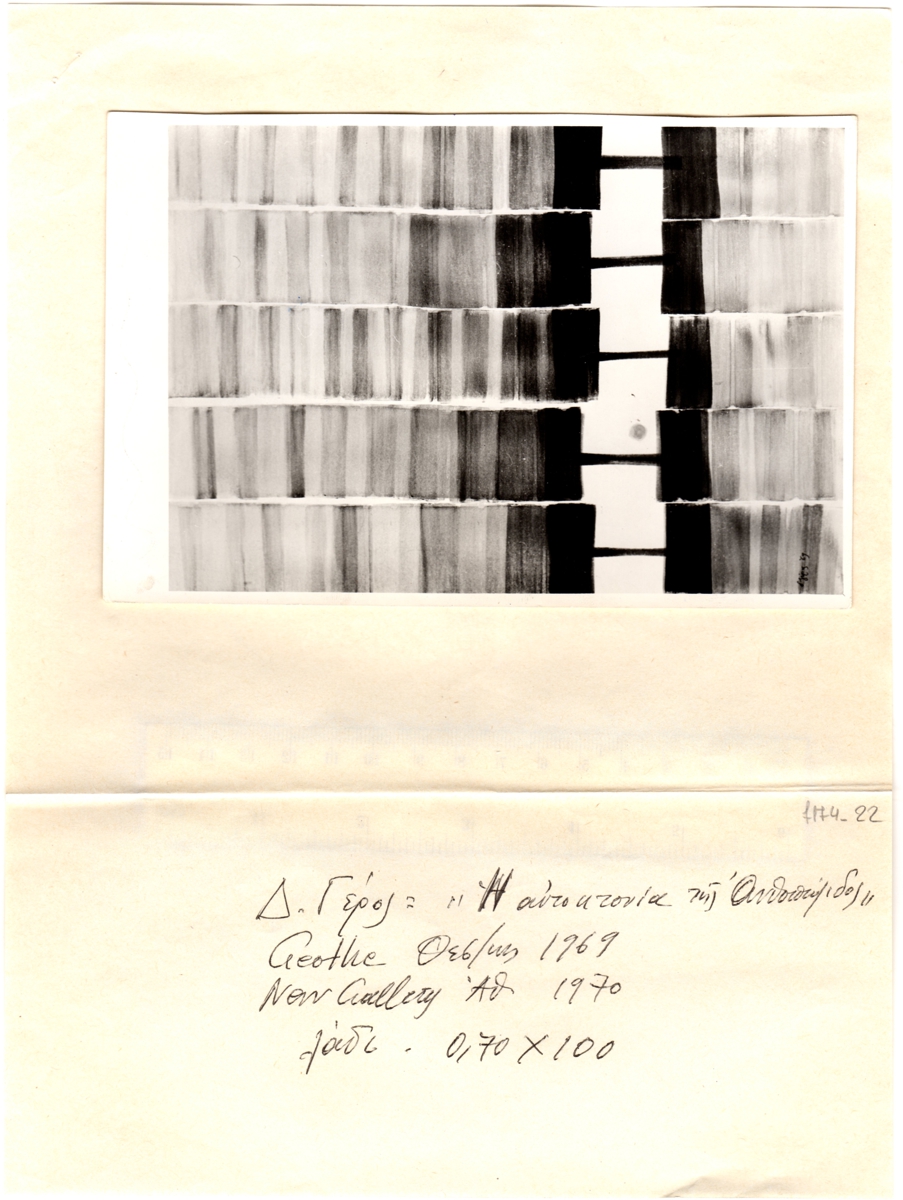 Φωτογραφία, α/μ, φωτογραφικό χαρτί, 12×18 εκ., κολλημένη σε λευκή κόλλα διαστάσεων 29×21,5 εκ., έργου του Δημήτρη Γέρου.