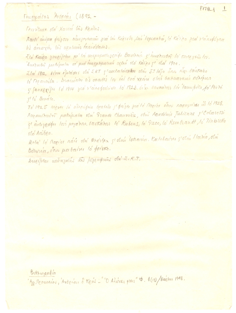 Βιογραφικό, χειρόγραφο, χαρτί, 29×21,5 εκ., στα ελληνικά, του Ανδρέα Γεωργιάδη.