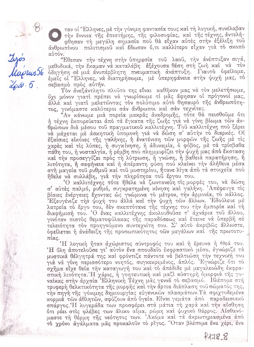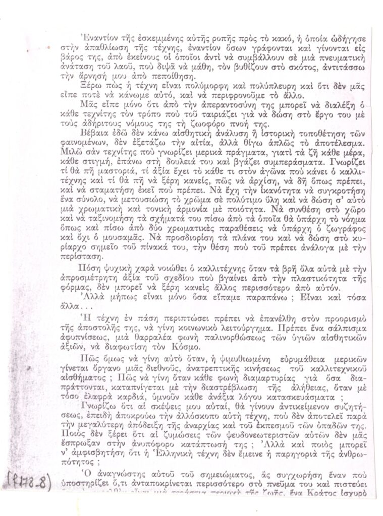 Φωτοαντίγραφο αποκόμματος εντύπου, χαρτί, 4 φφ, ακανόνιστου μεγέθους, στα ελληνικά, με κείμενο του Ανδρέα Γεωργιάδη, στο οποίο εκφράζεται για την Τέχνη και το έργο του.