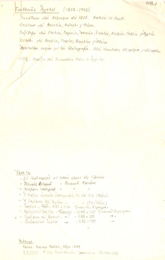 Βιογραφικό, χειρόγραφο, χαρτί, 30×19,2 εκ., στα ελληνικά, του Άγγελου Γιαλλινά. Περιέχει προσωπικά στοιχεία, εργογραφία και βιβλιογραφία.