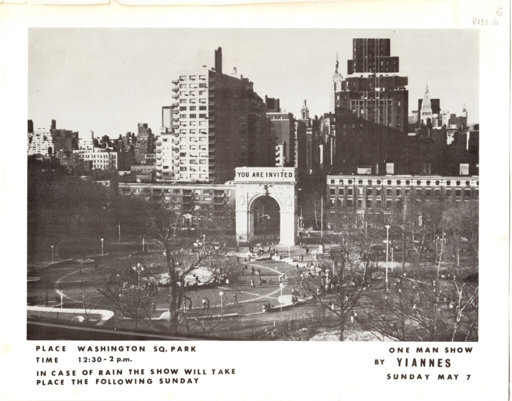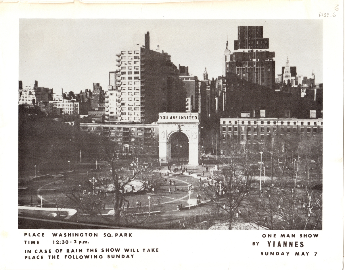 Έντυπα, χαρτί, 23×29 εκ., 2 φύλλα, με φωτογραφικές αναπαραγωγές, α/μ, που εικονίζουν αντίστοιχα εγκατάσταση/ installation και performance του Γιάννη Ιορδανίδη.