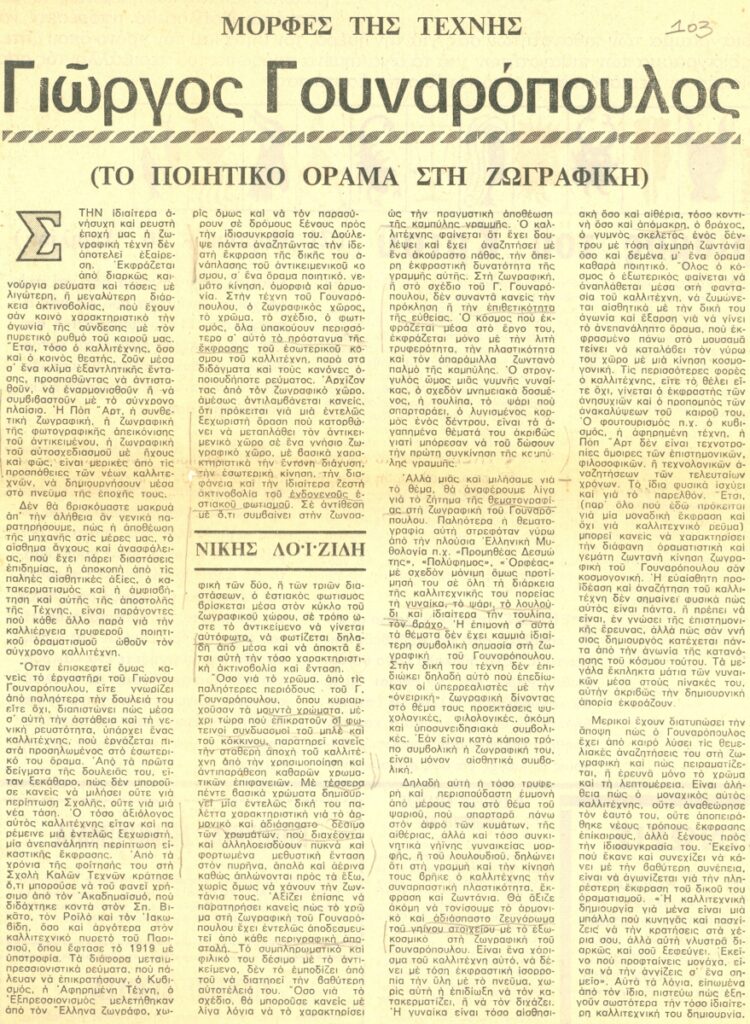 Απόκομμα εντύπου, χαρτί, 27,5×19,5 εκ., στα ελληνικά. Κριτική της Ν. Λοϊζίδη στο έργο του καλλιτέχνη.