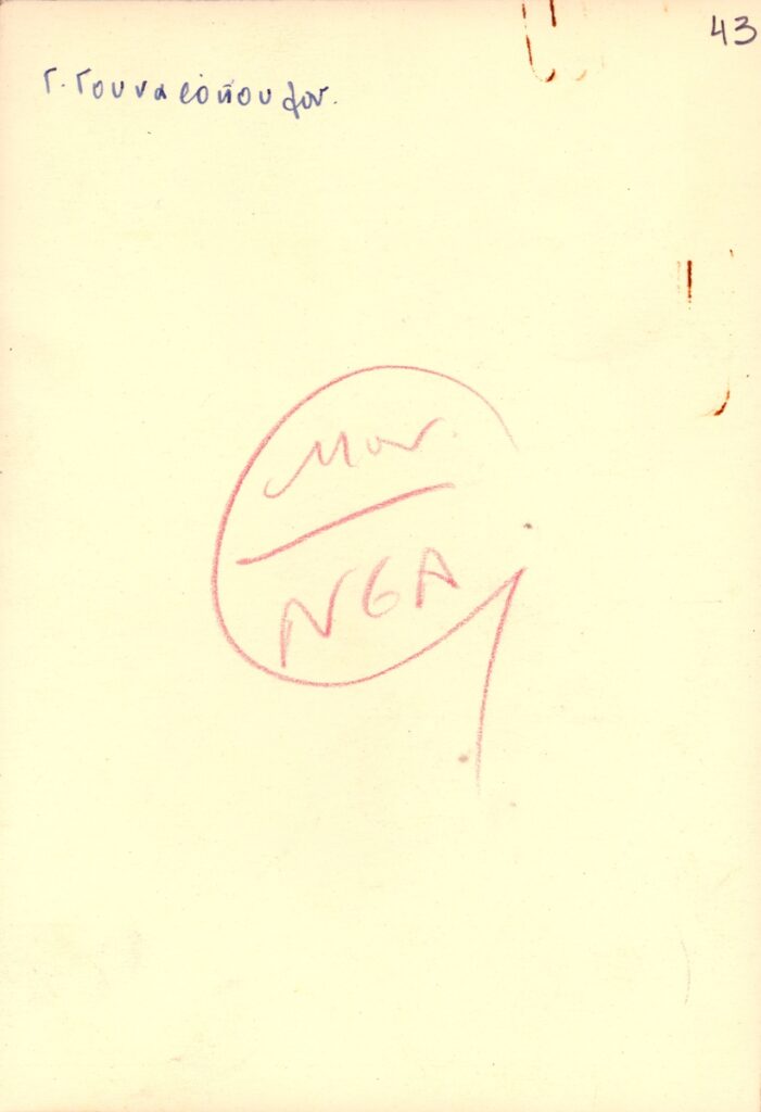 Φωτογραφία έργου, α/μ, 16,5×11,5 εκ. Στην εμπρόσθια και πίσω όψη επιγραφές.