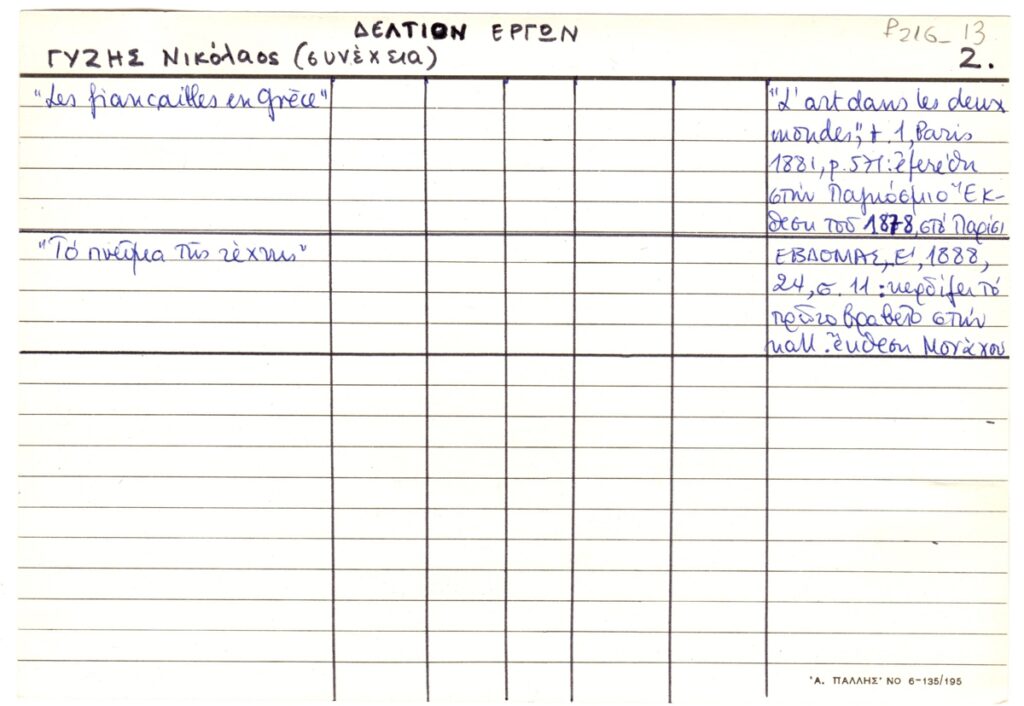 Εργογραφικό δελτίο του Νικόλαου Γύζη