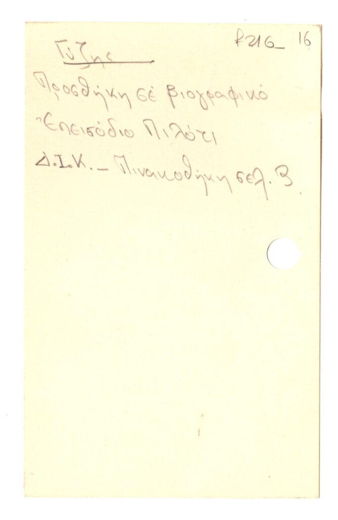 Απόκομμα, χειρόγραφο, χαρτί, 12×7,5 εκ., στα ελληνικά, με βιογραφικά στοιχεία για τον Νικόλαο Γύζη.