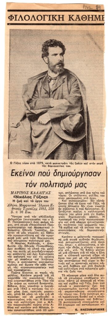 Απόκομμα της εφημερίδας “Η Καθημερινή” (04/02/1982), δημοσίευσης κριτικής βιβλίου του Μαρίνου Καλλιγά για τον Νικόλαο Γύζη.