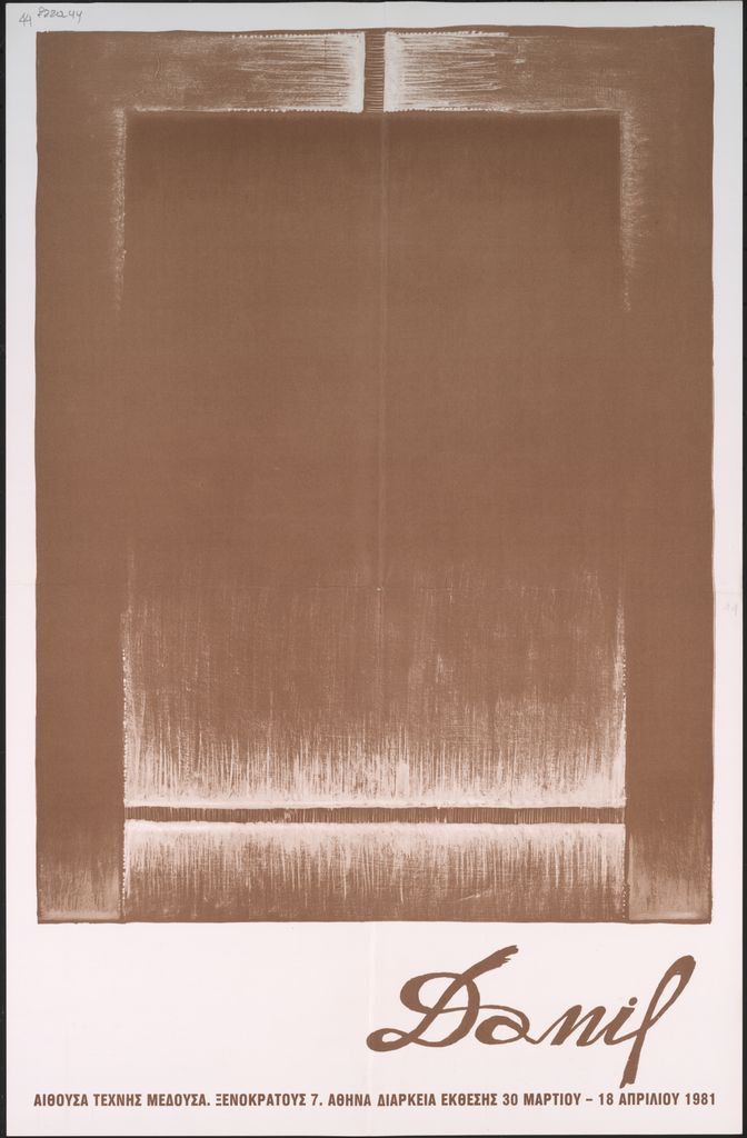 Έντυπο, χαρτόνι διπλής όψεως, 50×33 εκ., στα ελληνικά, ατομικής έκθεσης του Δανιήλ (Παναγόπουλου), η οποία διεξάγεται στην γκαλερί Μέδουσα στην Αθήνα το 1981. Περιέχει κείμενο του Α. Ξύδη με τίτλο “Πως βλέπει ο Δανιήλ το χώρο”, βιογραφικό του καλλιτέχνη και εικονογράφηση.