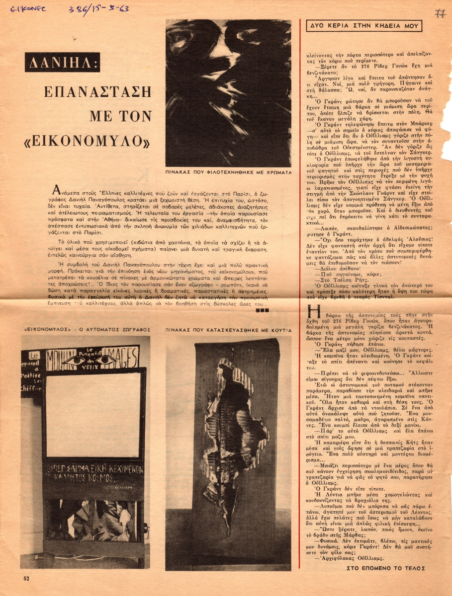 Απόκομμα, χαρτί, 32×24,5 εκ., δημοσίευσης άρθρου για το έργο του Δανιήλ (Παναγόπουλου).