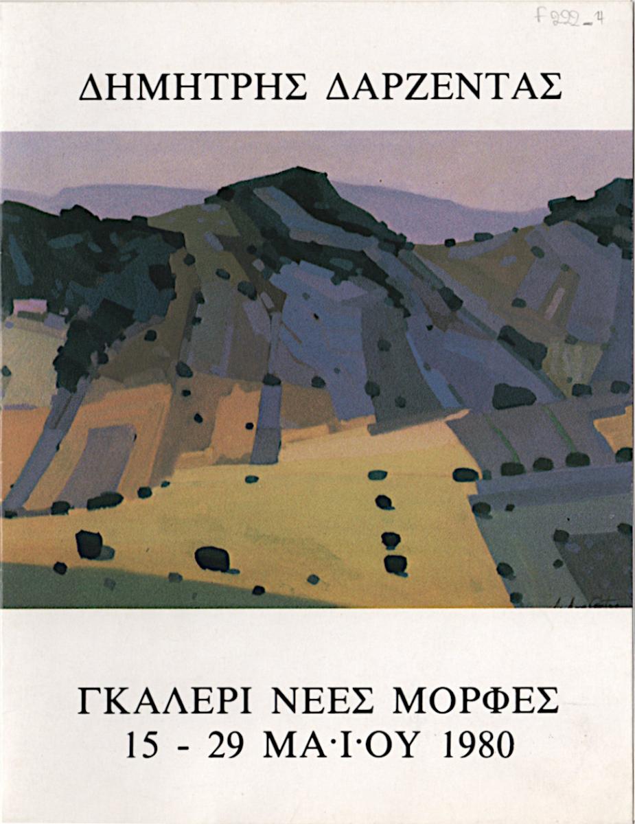 Έντυπο ατομικής έκθεσης του Δημήτρη Δαρζέντα στην Γκαλερί “Νέες Μορφές” Αθήνα. Περιέχει κείμενο του καλλιτέχνη και σύντομο βιογραφικό και φωτογραφίες έργων.