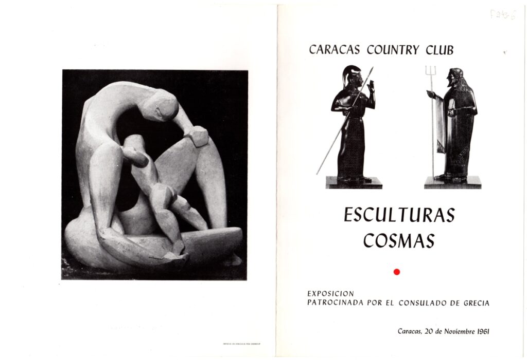 Κατάλογος, χαρτί αναδιπλωμένο, 23×16 εκ., στα ισπανικά, έργων ατομικής έκθεσης γλυπτικής του Κοσμά Δοβλέτογλου στο Καράκας.