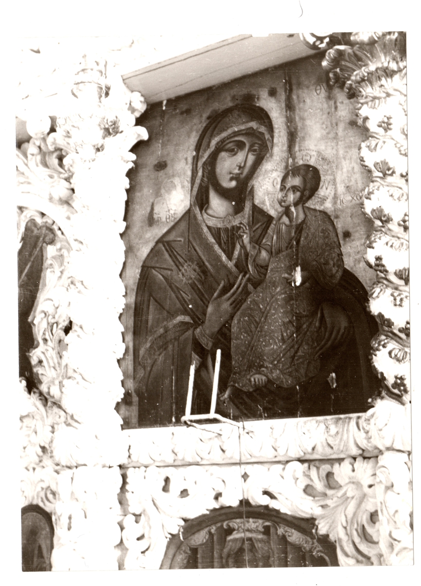 Φωτογραφία, α/μ, φωτογραφικό χαρτί, 17,5×13 εκ., έργου, του Ιερού Ναού Αγίου Σπυρίδωνα στη Λευκάδα, που φιλοτέχνησε ο Παναγιώτης Δοξαράς ή ο Τομάζο Τζεν. Η πίσω όψη φέρει επιγραφές.