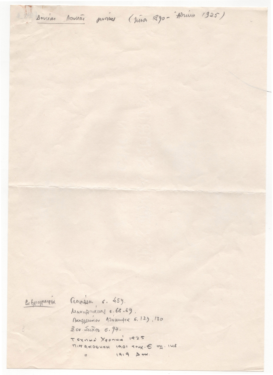 Κείμενο, χειρόγραφο, με μολύβι, χαρτί, 29,8×21,0 εκ., στα ελληνικά. Βιβλιογραφία για τον καλλιτέχνη.