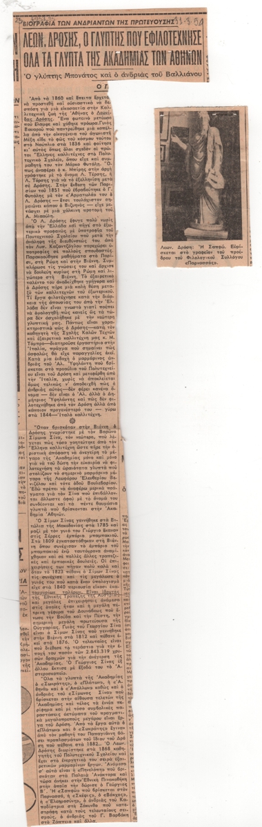 Λεων. Δρόσης, ο γλύπτης που εφιλοτέχνησε όλα τα γλυπτά της Ακαδημίας των Αθηνών. Ο γλύπτης Μπονάτος και ο ανδρίας του Βαλλιάνου