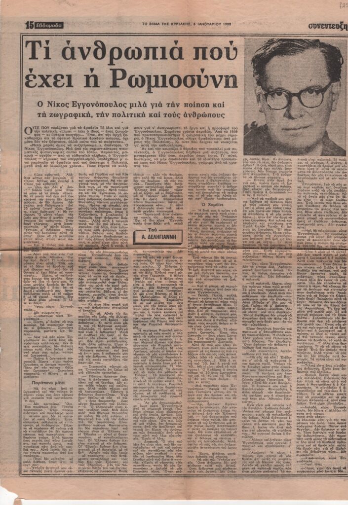 Τι ανθρωπιά που έχει η Ρωμιοσύνη. Ο Νίκος Εγγονόπουλος μιλά για την ποίηση και τη ζωγραφική, την πολιτική και τους ανθρώπους