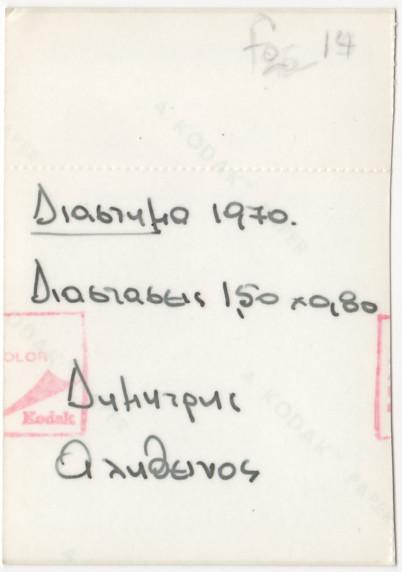 Φωτογραφία, έγχρωμη, σε φωτογραφικό χαρτί Kodak, 8,8×6,2 εκ. Αναπαραγωγή έργου του Δ. Αληθεινού. Στην πίσω όψη επιγραφή.