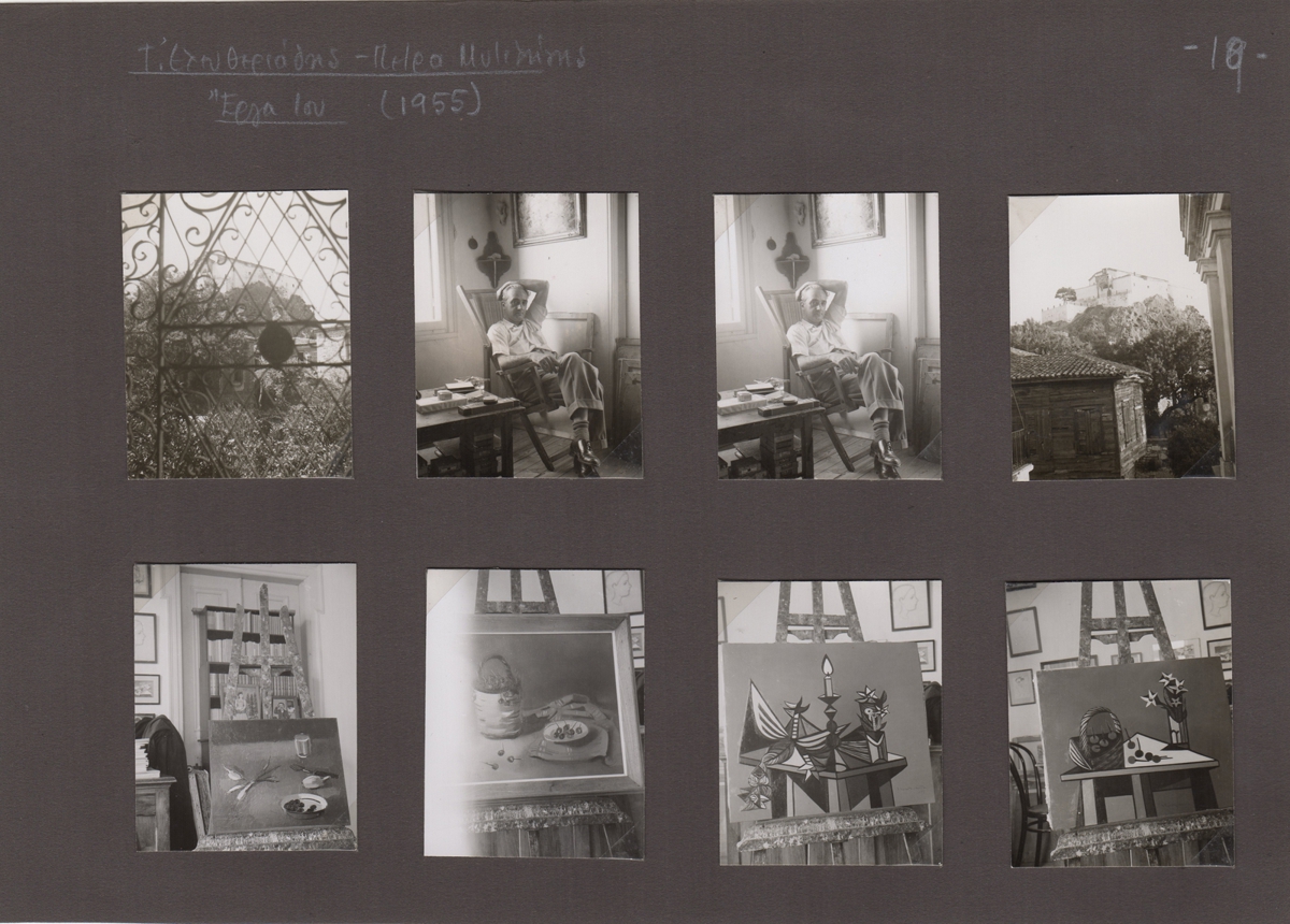 Χαρτόνι, 17,5×24,5 εκ., με κολλημένες φωτογραφίες διαστάσεων 5,5×4 εκ., που σχετίζονται με τον Τάκη Ελευθεριάδη. Ειδικότερα, οι φωτογραφίες εικονίζουν τον ίδιο, την Πέτρα Μυτιλήνης και έργα του καλλιτέχνη.