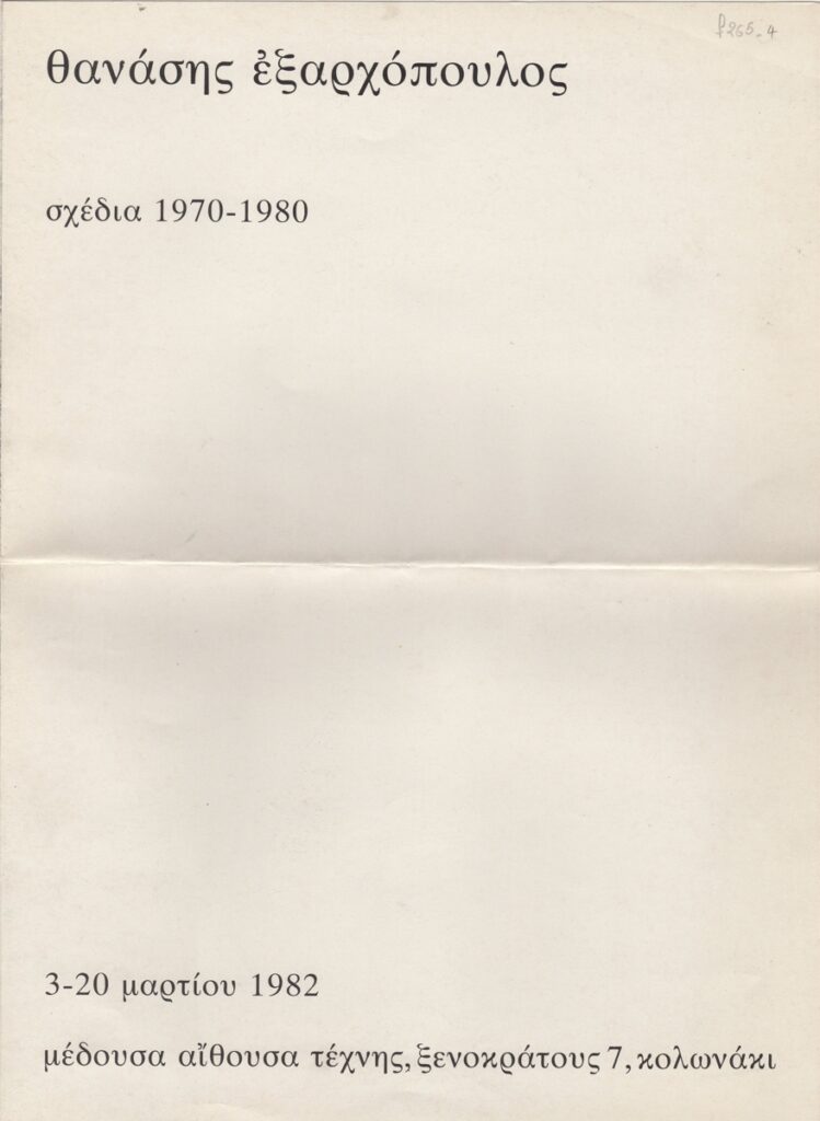Έκθεση Θανάση Εξαρχόπουλου “Θανάσης Εξαρχόπουλος. Σχέδια 1970-1980”.
